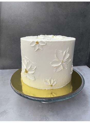 Torta de panqueque rellena de manjar, cubierta merengue suizo o crema.Adornado con profiteroles.