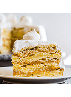 Esponjoso bizcocho casero relleno con piña, crema pastelera y manjar, cubierta crema o merengue suizo. Como las tortitas caseras de antes, reposada y deliciosa.Pedir con al menos 24 horas de anticipación.Tamaños 15, 20, 30, 40, 50 y 60 porciones.